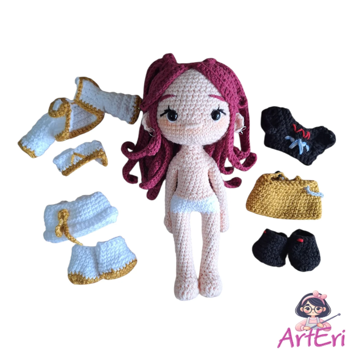 Πλεκτή κούκλα Μίρα σετ 2 ρούχα με λαμπάδα (25cm)