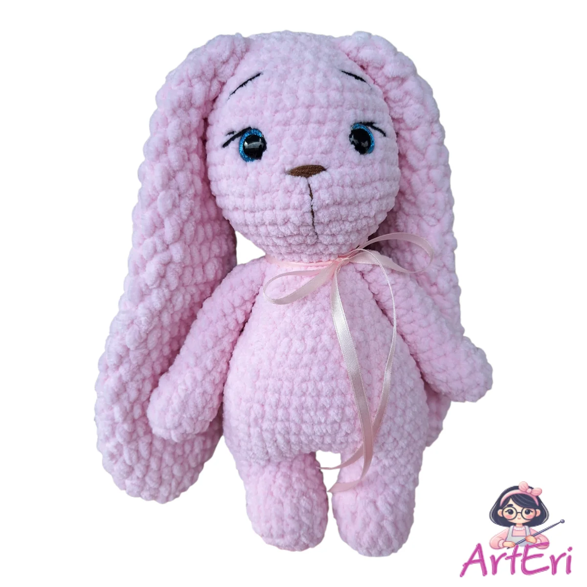 Πλεκτό βελούδινο κουνελάκι ροζ με λαμπάδα (25cm)