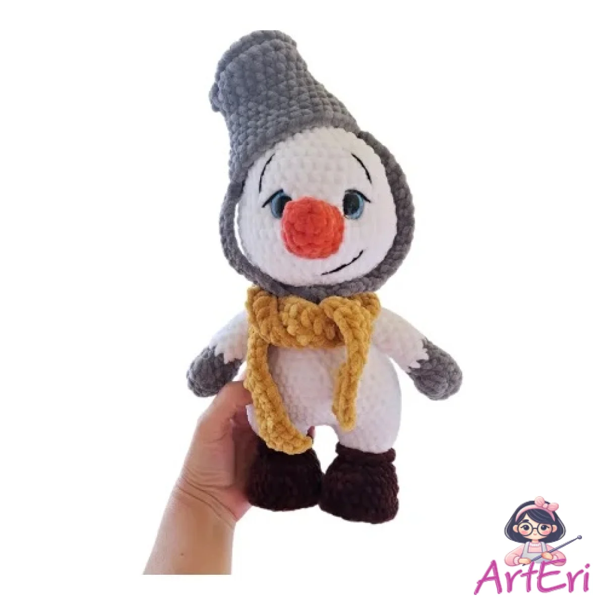 Χειροποίητος χιονάνθρωπος σαν να βγήκε από παραμύθι, φτιαγμένες με απαλό βελούδινο νήμα κατάλληλο και για μωρά,με καπέλο και κασκόλ που βγαίνουν. Επίσης στέκεται όρθιος