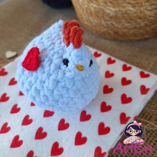 Χειροποίητη μικρή κοτούλα φτιαγμένη με βελονάκι,πολύ απαλή με καρδούλες κόκκινες για φτερά Μήκος 12εκ