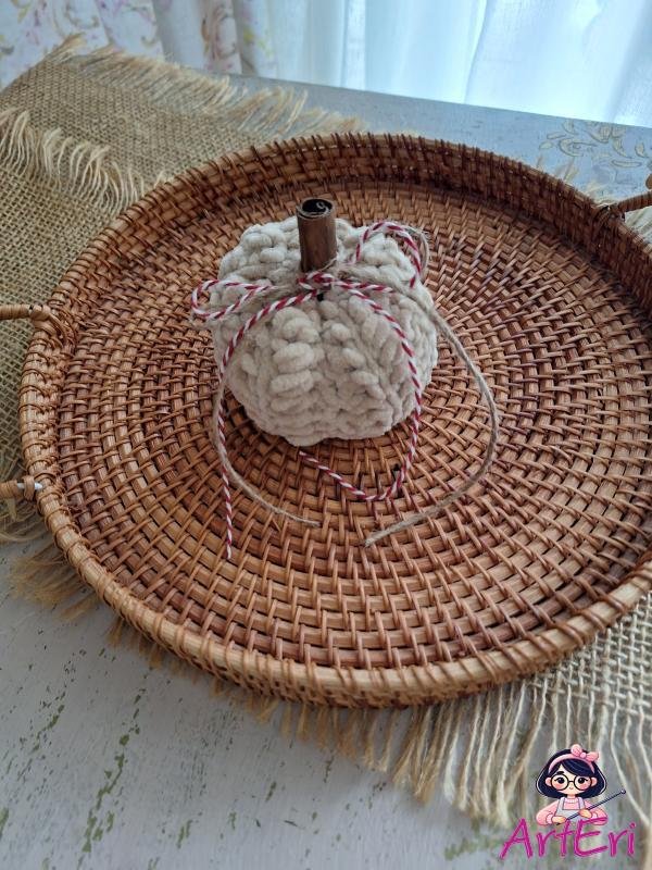 Χειροποίητη πλεκτή κολοκύθα από απαλό βελούδινο νήμα με στικ κανέλας σε μικρό μέγεθοςΜέγεθος:26cm περίμετρος -6cm υψος