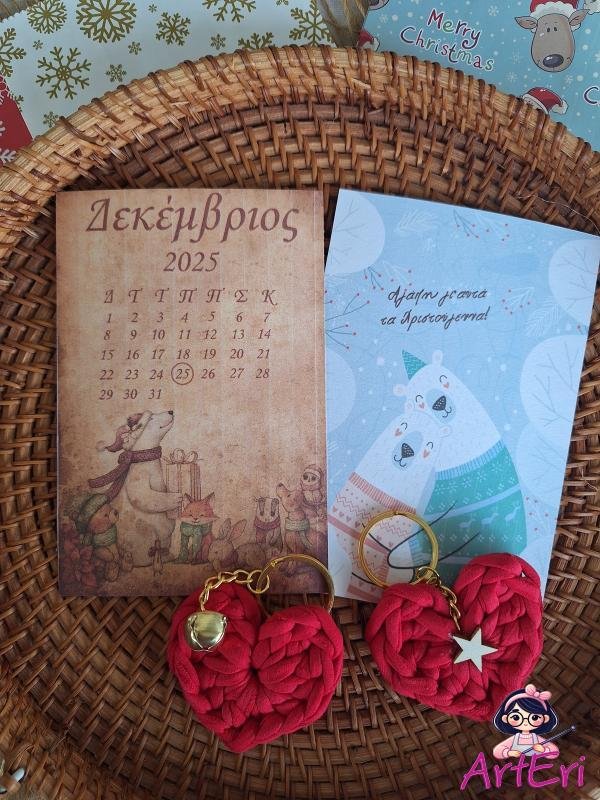 Χειροποίητη πλεκτή καρδούλα χρυσό μπρελόκ με διακοσμητικό κουδουνάκι μεταλλικό ή ξύλινο αστεράκι μαζί με όμορφη καρτούλα για να γράψετε τις ευχές σας!